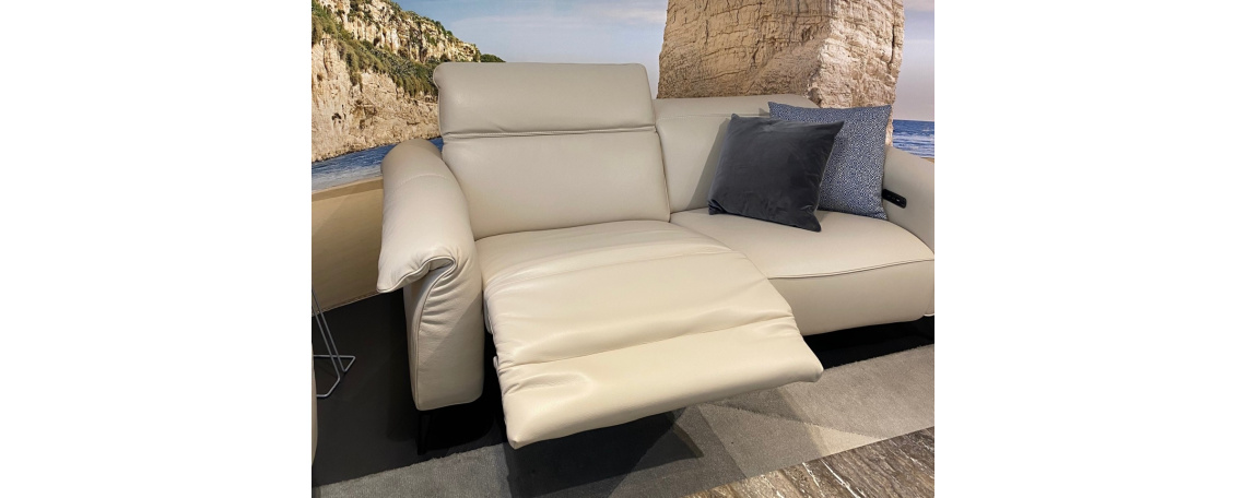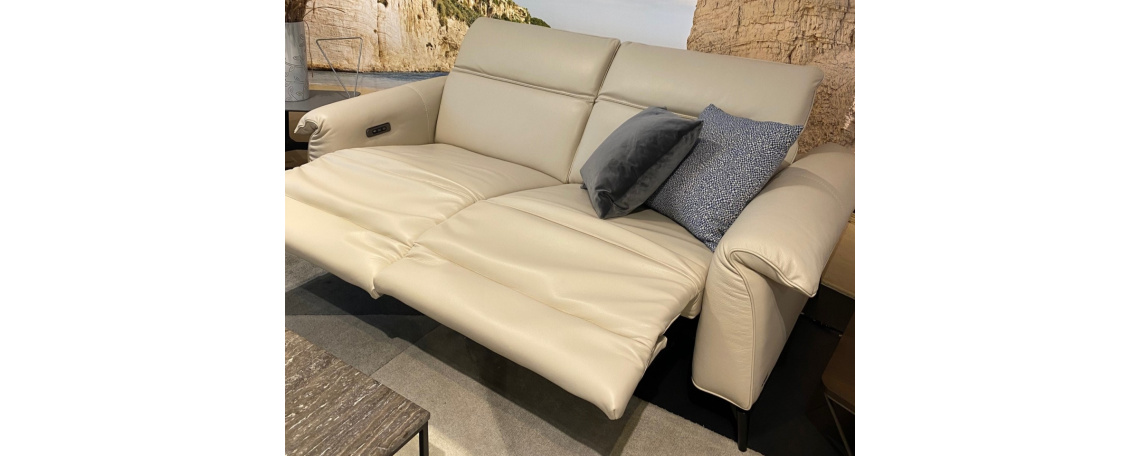 ODPRODAJA SE: trosed z el.počivalnikoma in dvosed sedežne garniture Leggiadro z dvižnimi nasloni za glavo. Sedežna garnitura je oblazinjena v vrhunsko, mehko Natuzzi usnje v bež odtenku dream 20JJ.