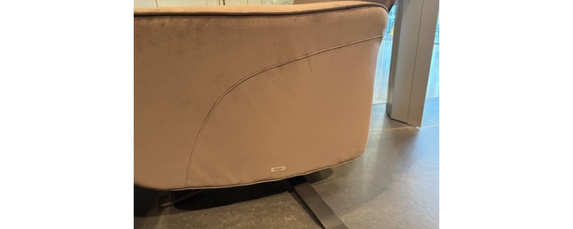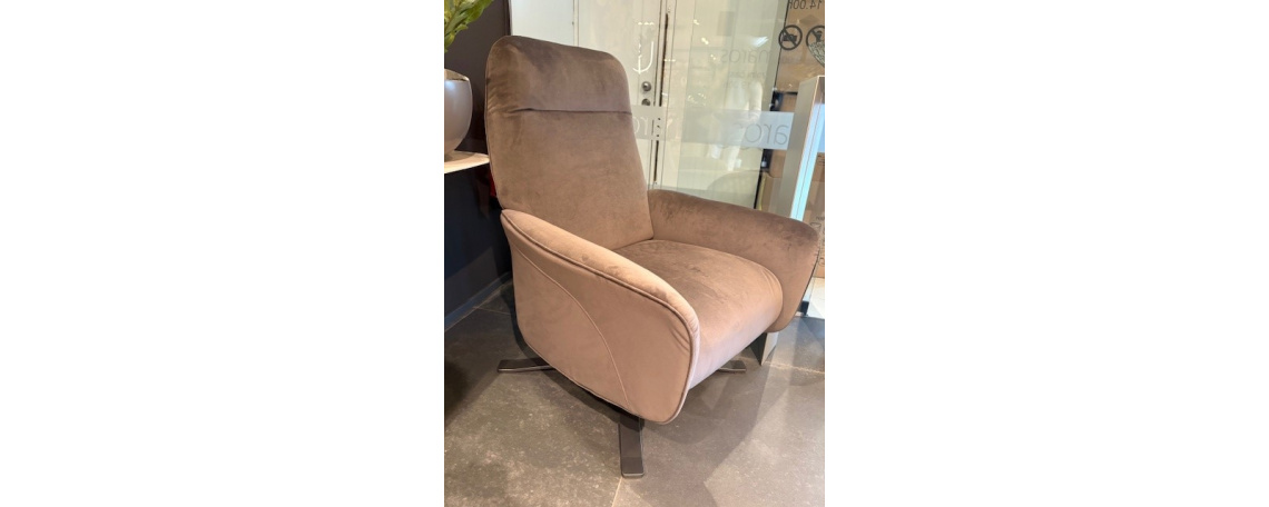 ODPRODAJA SE: Fotelj SIDNEY v rjavem plišu, na vrtljivem kovinskem podstavku.