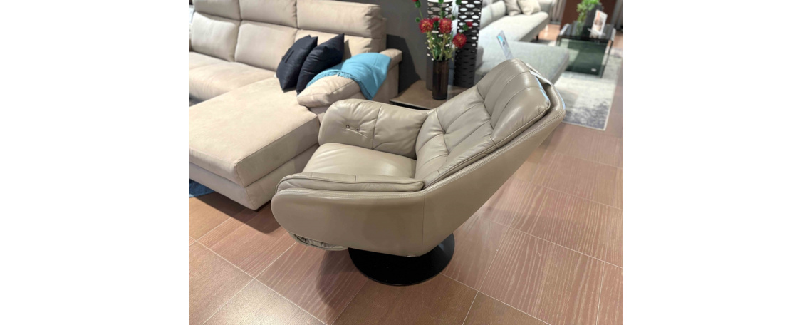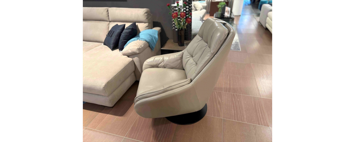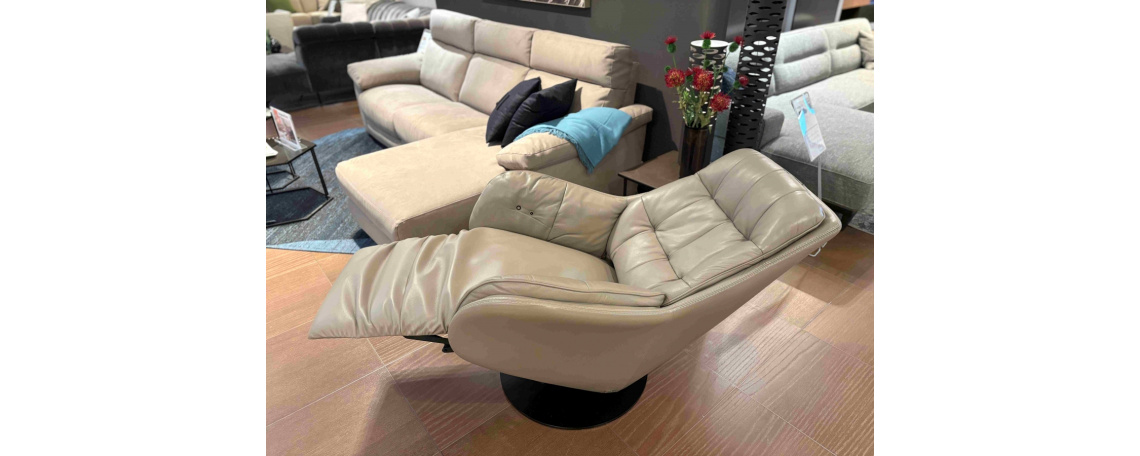 ODPRODAJA SE: Počivalnik z električnim Relax mehanizmom v pravem Natuzzi usnju, sivo-rjave barve.